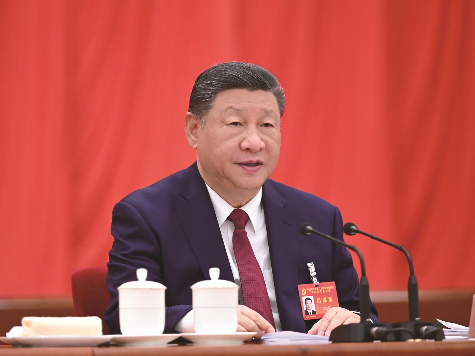 中国共产党第二十届中央委员会第四次全体会议,于2025年10月20日至23日在北京举行。中央委员会总书记习近平作重要讲话。 新华社记者 谢环驰 摄