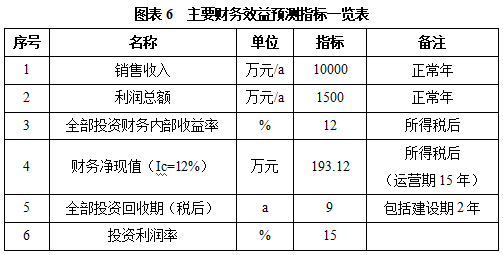 项目达产后,年销售收入10000万元,利润1500万元,投资回收期9年(税后,含建设期2年),投资利润率15%。