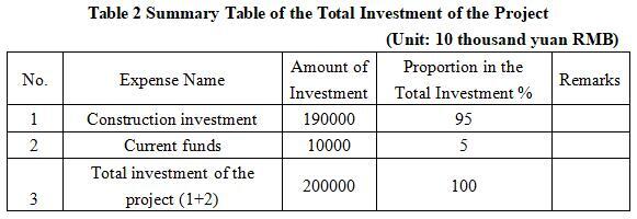 The total investment of the project is 2 billion yuan, including the construction investment of 1.9 billion yuan and current funds of 100 million yuan.