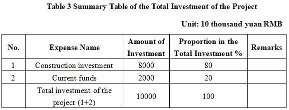 The total investment of the project is 100 million yuan, including the construction investment of 80 million yuan and current funds of 20 million yuan.