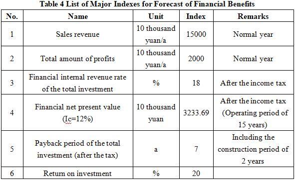 After the project reaches the production capacity, its annual sales revenue will be 150 million yuan, its profit will be 20 million yuan, its investment payback period will be 7 years (after the tax, including the construction period of 2 years) and its return on investment will be 20%.