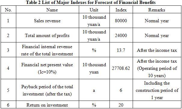After the project reaches the production capacity, its annual sales revenue will be 800 million yuan, its profit will be 240 million yuan, its investment payback period will be 6 years (after the tax, including the construction period of 1 year) and its return on investment will be 20%.