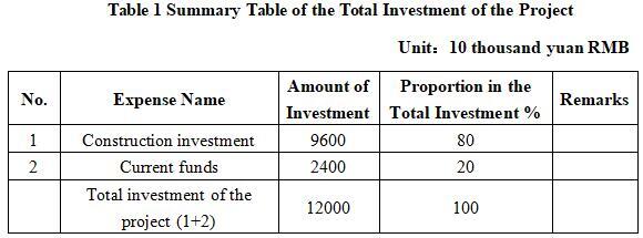The total investment of the project is 120 million yuan, including the construction investment of 96 million yuan and current funds of 24 million yuan.