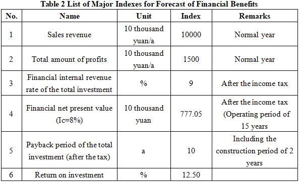 After the project reaches the production capacity, its annual sales income will be 100 million yuan, its profit will be 15 million yuan, its investment payback period will be 10 years (after the tax, including the construction period of 2 years) and its return on investment will be 12.5%.