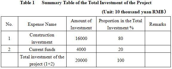 1.3 Total investment of the project and capital raising