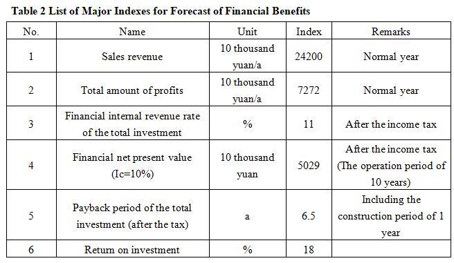 After the project reaches the production capacity, its annual sales income will be 242 million yuan, its profit will be 72.72 million yuan, its investment payback period will be 6.5 years (after the tax, including the construction period of 1 year) and its investment profit rate will be 18%.