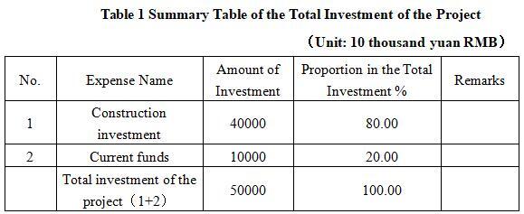 1.3 Total investment of the project and capital raising