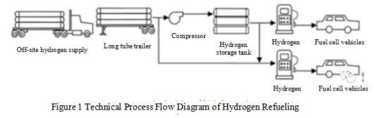 The long tube trailer transports compressed hydrogen from the hydrogen production unit to a fixed station, and unloads the hydrogen to the high-pressure hydrogen storage tank inside the station through the compressor in the hydrogen refueling station. When the vehicle is refueled with hydrogen, the hydrogen output from the long tube trailer or hydrogen storage tank is filled into the on-board hydrogen storage bottle of the fuel cell vehicle through the hydrogen refueling machine.