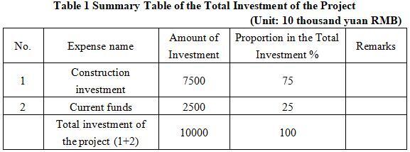 1.3 Total investment of the project and capital raising