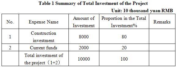 1.3 Total investment of the project and capital raising
