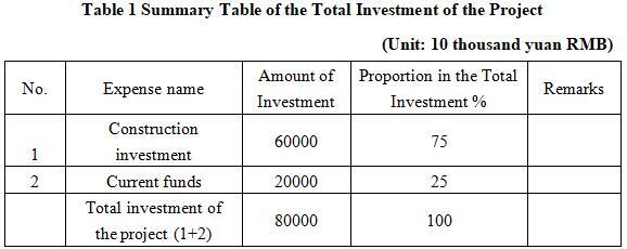 1.3 Total investment of the project and capital raising