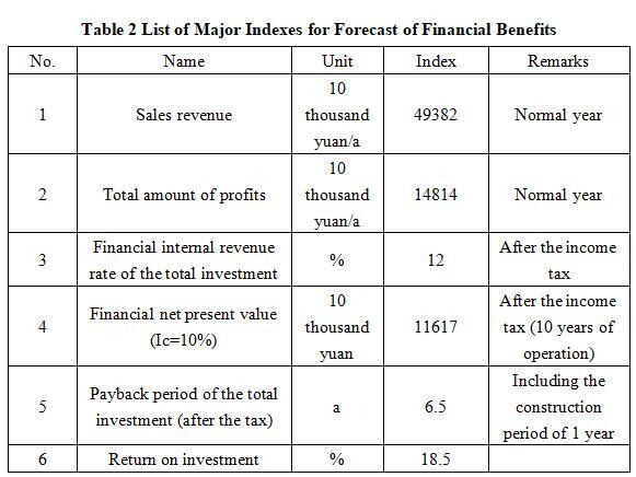 After the project reaches the production capacity, its annual sales revenue will be 493.82 million yuan, its profit will be 148.14 million yuan, its investment payback period will be 6.5 years (after the tax, including the construction period of 1 year) and its return on investment will be 18.5%.