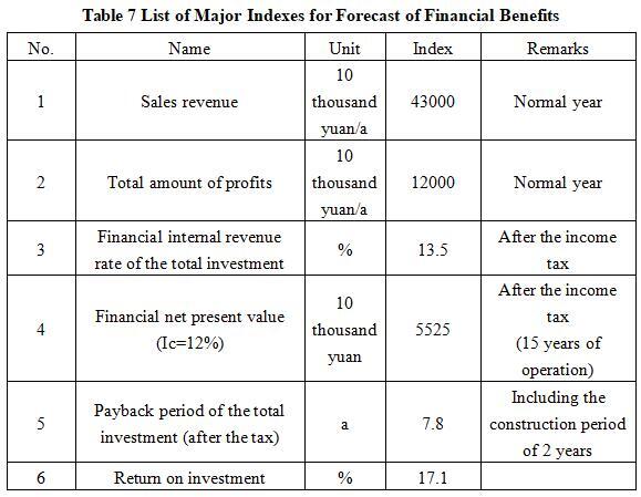 After the project reaches the production capacity, its annual sales revenue will be 430 million yuan, its profit will be 120 million yuan, its investment payback period will be 7.8 years (after the tax, including the construction period of 2 years) and its return on investment will be 17.1%.