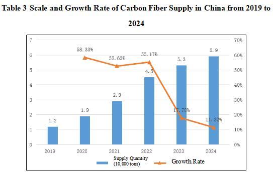 The overall supply of carbon fiber in China is on the rise. The supply of carbon fiber in China was 12,000 tons in 2019, and has been increasing year by year since then. It reached 19,000 tons in 2020, 29,000 tons in 2021, 45,000 tons in 2022, and 53,000 tons in 2023.The supply reached 59,000 tons in 2024.