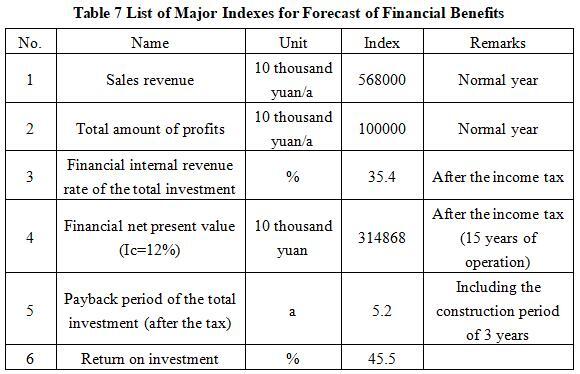 After the project reaches the production capacity, its annual sales revenue will be 5,680 million yuan, its profit will be 1,000 million yuan, its investment payback period will be 5.2 years (after the tax, including the construction period of 3 years), and its return on investment will be 45.5%.