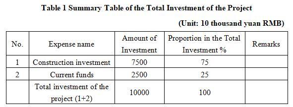 1.3 Total investment of the project and capital raising