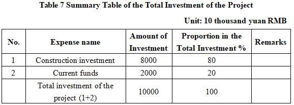 The total investment of the project is 100 million yuan, including the construction investment of 80 million yuan, and current funds of 20 million yuan.
