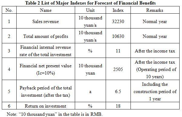After the project reaches the production capacity, its annual sales revenue will be 322.3 million yuan, its profit will be 106.3 million yuan, its investment payback period will be 6.5 years (after the tax, including the construction period of 1 year) and its return on investment will be 18%.