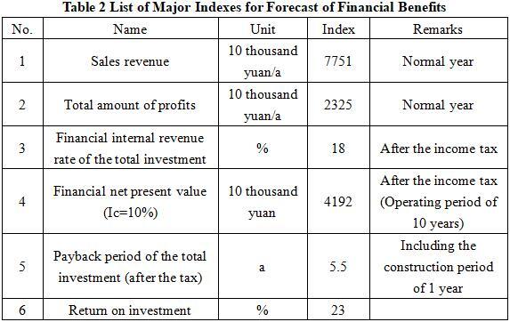 After the project reaches the production capacity, its annual sales revenue will be 77.51 million yuan, its profit will be 23.25 million yuan, its investment payback period will be 5.5 years (after the tax, including the construction period of 1 year) and its return on investment will be 23%.