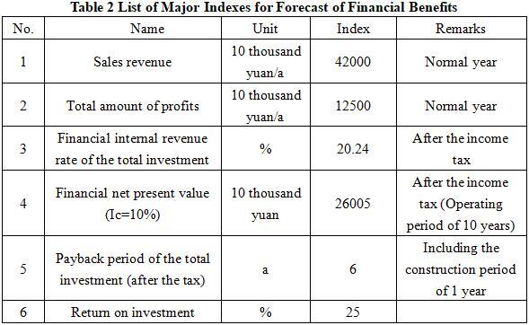 After the project reaches the production capacity, its annual sales revenue will be 420 million yuan, its profit will be 125 million yuan, its investment payback period will be 6 years (after the tax, including the construction period of 2 years) and its investment profit rate will be 25%.
