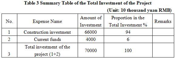 The total investment of the project is 700 million yuan, including the construction investment of 660 million yuan and current funds 40 million yuan.