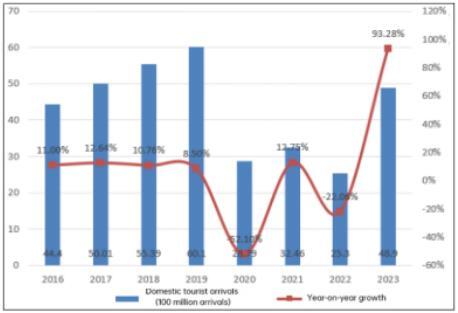 Figure 1 Domestic Tourist Arrivals and Growth in China from 2016 to 2023