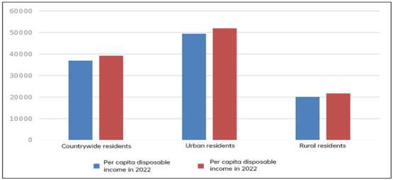 Figure 1 Per Capita Disposable Income of Countrywide, Urban and Rural Residents in China from 2022 to 2023