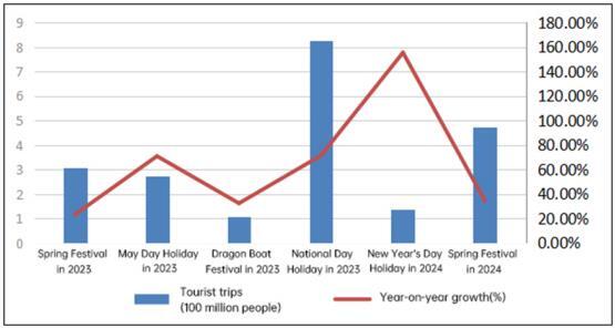 Figure 3 The Number of People Traveling during Major Holidays in China from 2023 to 2024