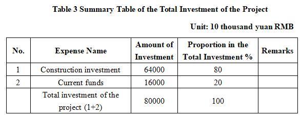 The total investment of the project is 800 million yuan, including the construction investment of 640 million yuan and current funds of 160 million yuan.