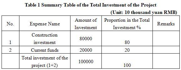 The total investment of the project is 1 billion yuan, including the construction investment of 800 million yuan.