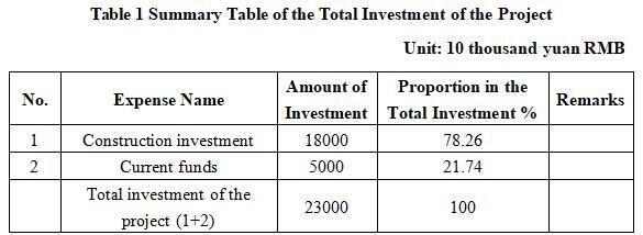 The total investment of this project is 230 million yuan, including construction investment of 180 million yuan and current funds of 50 million yuan.