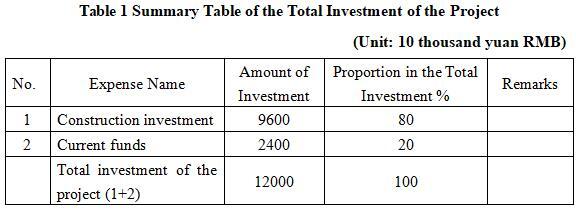 1.3 Total investment of the project and capital raising