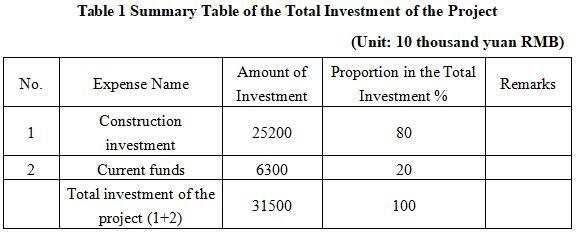 1.3.1 Total investment of the project