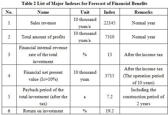 After the project reaches the production capacity, its annual sales income will be 221.45 million yuan, its profit will be 73.1 million yuan, its investment payback period will be 7.2 years (after the tax, including the construction period of 2 years) and its investment profit rate will be 19.2%.