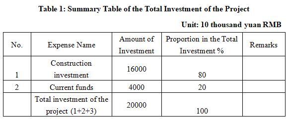 1.3 Total investment of the project and capital raising