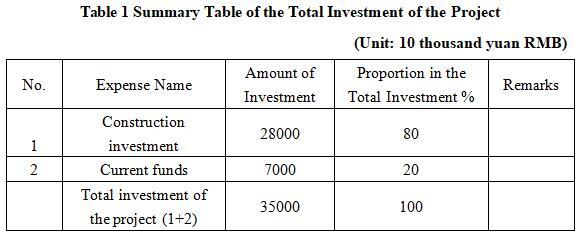 The total investment of the project is 350 million yuan, including the construction investment of 280 million yuan