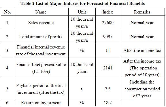 After the project reaches the production capacity, its annual sales income will be 276 million yuan, its profit will be 90.95 million yuan, its investment payback period will be 7.5 years (after the tax, including the construction period of 2 years) and its investment profit rate will be 18.2%.