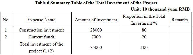 The total investment of the project is 350 million yuan, including a construction investment of 280 million yuan and a working capital of 70 million yuan.