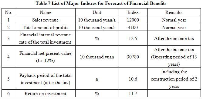 After the project reaches the production capacity, its annual sales income will be 120 million yuan, its profit will be 41 million yuan, its investment payback period will be 10.6 years (after the tax, including the construction period of 2 years) and its investment profit rate will be 11.7%.