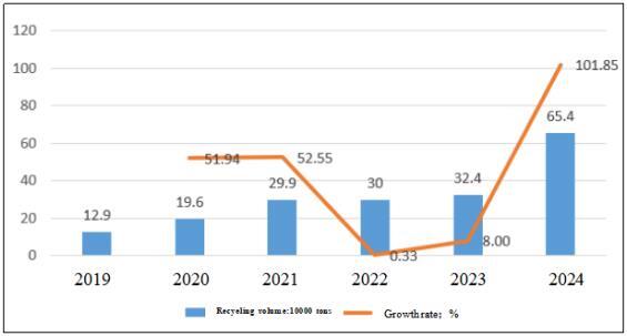 Figure 2 Trend of China's power battery recycling volume from 2019 to 2024
