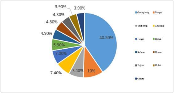 Figure 7 Top 10 provinces and cities in China for the distribution of power battery recycling service outlets for new energy vehicles