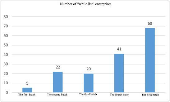 Figure 8 Statistics of the numbers of enterprises on the "white list" for comprehensive utilization of waste batteries in China