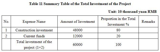 The total investment of the project is 600 million yuan, including a construction investment of 480 million yuan and a working capital of 120 million yuan.
