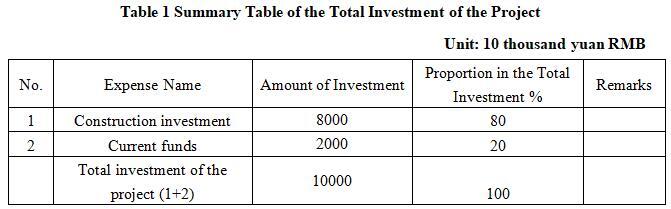 1.3 Total investment of the project and capital raising