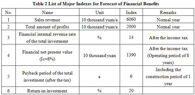 After the project reaches the production capacity, its annual sales income will be 60.6 million yuan, its profit will be 20 million yuan, its investment payback period will be 6 years (after the tax, including the construction period of 1 year) and its investment profit rate will be 20%.