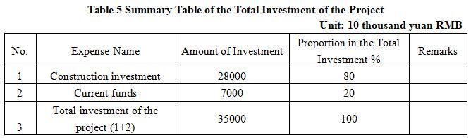 1.3 Total investment of the project and capital raising