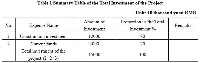 1.3 Total investment of the project and capital raising