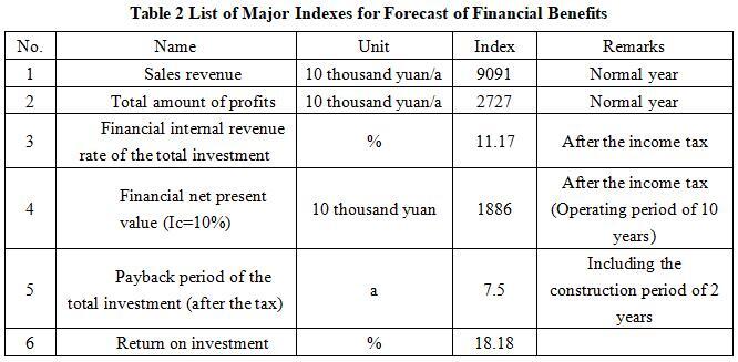 After the project reaches the production capacity, its annual sales income will be 90.91 million yuan, its profit will be 27.27 million yuan, its investment payback period will be 7.5 years (after the tax, including the construction period of 2 years) and its investment profit rate will be 18.18%.