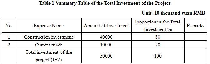 The total investment of the project is 500 million yuan, of which the construction investment is 400 million yuan.