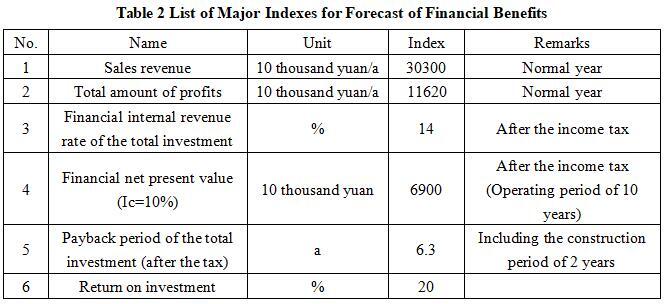 After the project reaches the production capacity, the annual sales revenue is 303 million yuan, the profit is 116.2 million yuan, the investment payback period is 6.3 years (after the tax, including the construction period of 2 years), and the investment profit rate is 20%.